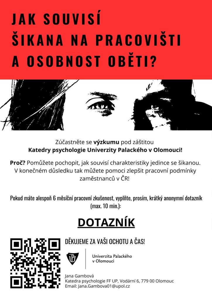 jmenuji se Jana Gambová a jsem studentkou 4. ročníku psychologie na Univerzitě Palackého v Olomouci.