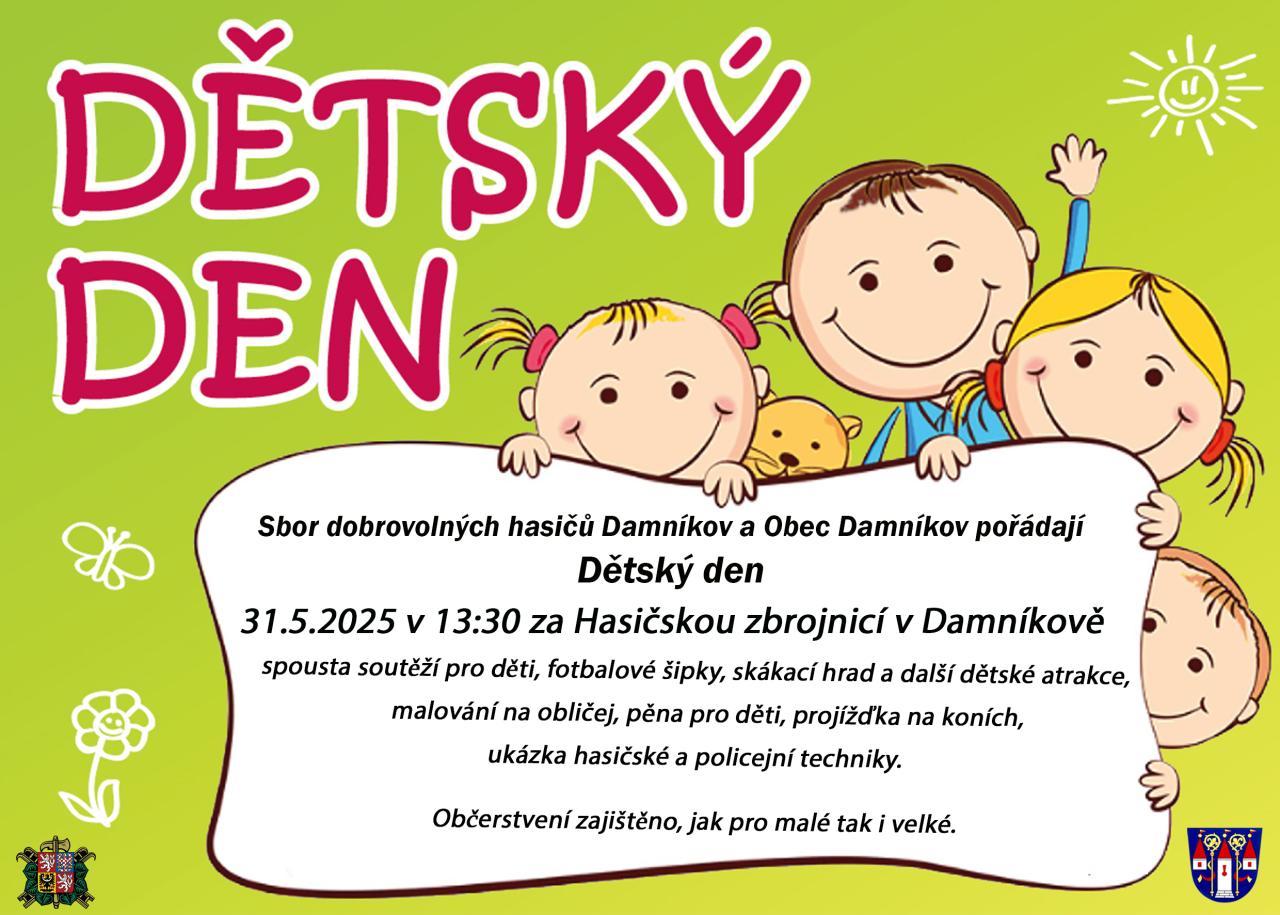 Sbor dobrovolných hasičů Damníkov a Obec Damníkov pořádají Dětský den, který se uskuteční 31. května 2025 v 13:30 za Hasičskou zbrojnicí. Na děti čeká spousta soutěží, jako fotbalové šipky, skákací hrad a další atrakce. K dispozici bude také malování na obličej, pěna pro děti a projížďka na koních. Kromě toho se můžete těšit na ukázku hasičské a policejní techniky. Občerstvení je zajištěno pro malé i velké.